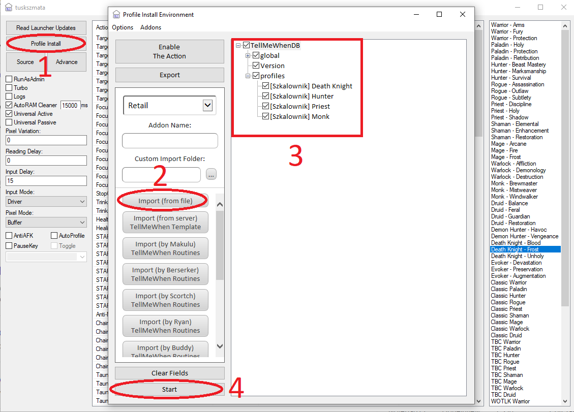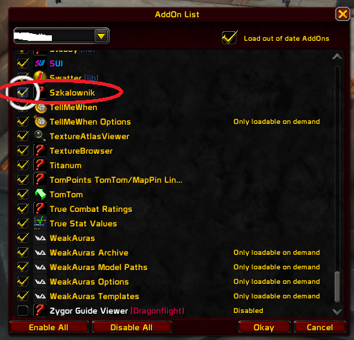 Go to game, option -> addons -> Tell Me when and select [Szkalownik] Proifle name