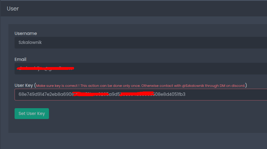 Copy user key from step above and update it in your account at szkalownik.com/user