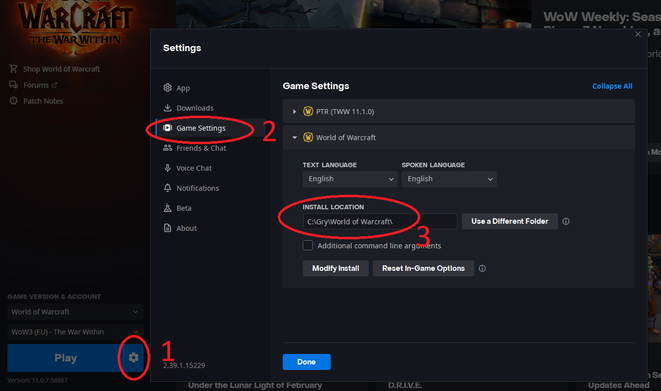 Get path to your WoW installation. You can find it in Battle.net game settings: